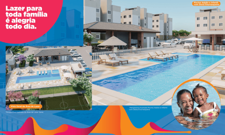 Área de Lazer: O condomínio possui uma ampla área de lazer, que inclui piscinas adulto e infantil, quadra poliesportiva, playground para crianças, academia ao ar livre e espaços para caminhada.